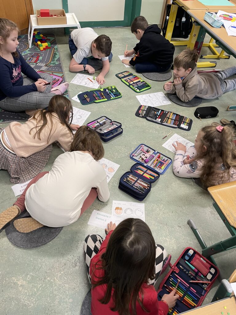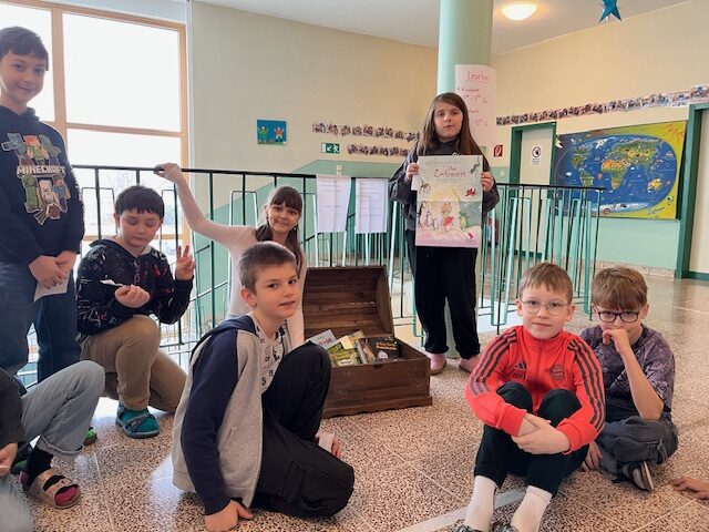 Am Mittwoch, 21.6.2026 fand ein Lesekino in unserer Schule statt. Die Schüler:innen durften sich zwei Lesekinokarten aussuchen und besuchten zwei von acht Stationen, an denen ihnen neue Bücher vorgestellt und vorgelesen wurden. Zum Schluss gab es dazu Rätsel zum Auslösen oder kleine Bastelarbeiten.